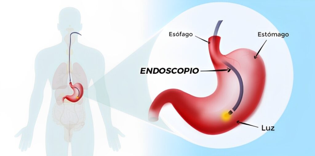 O paciente recebe uma sedação leve para relaxar e não sentir desconforto. Em seguida, o médico introduz um aparelho fino e flexível pela boca — o endoscópio — que possui uma microcâmera na ponta, permitindo a visualização direta das estruturas internas.